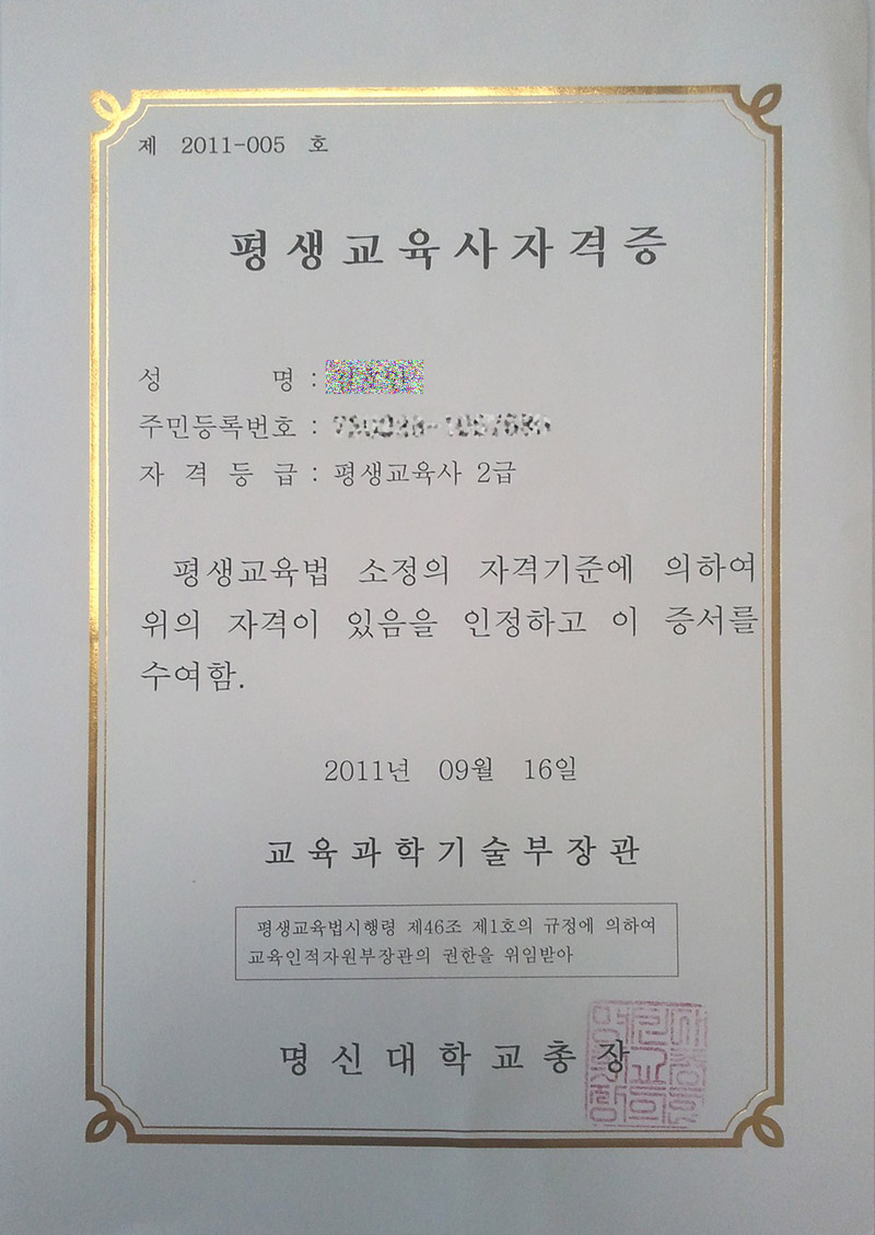 평생 교육사2급 자격증을 보유하고 있는 '진짜' 강사