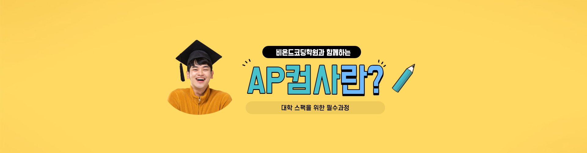 자바는 Class를 기본으로 하는 객체지향언어입니다. 처음부터 로직과 Class를 동시에 배우게 되면 bit, byte도 모르는 왕초보의 경우에는 대부분 포기하게 됩니다. 저희 학원은 처음부터 자바를 가르치지 않고 C언어와 다양한 알고리즘을 통한 실습으로 프로그램적인 로직을 형성한 후에 AP수업을 시작하기 때문에 컴퓨터를 전혀 모르는 컴맹도 쉽게 시작할 수 있습니다.